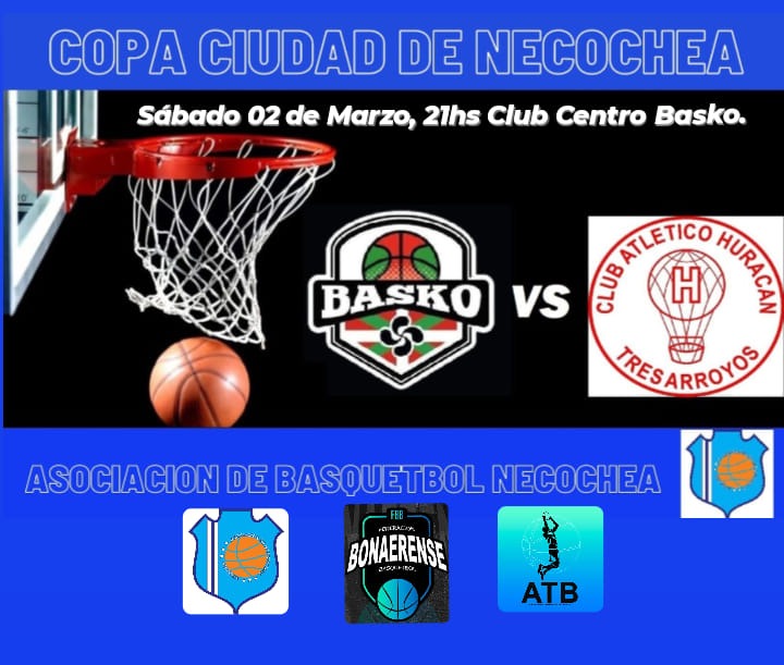 El sábado venidero se jugará en nuestra ciudad, más precisamente en el gimnasio de Centro Basko, un partido de básquetbol donde estará en juego la Copa “Ciudad de Necochea”. En la oportunidad se presentará el campeón de la Asociación Tresarroyense de Básquetbol, Huracán, que enfrentará al dueño de casa, subcampeón del torneo Clausura 2023.