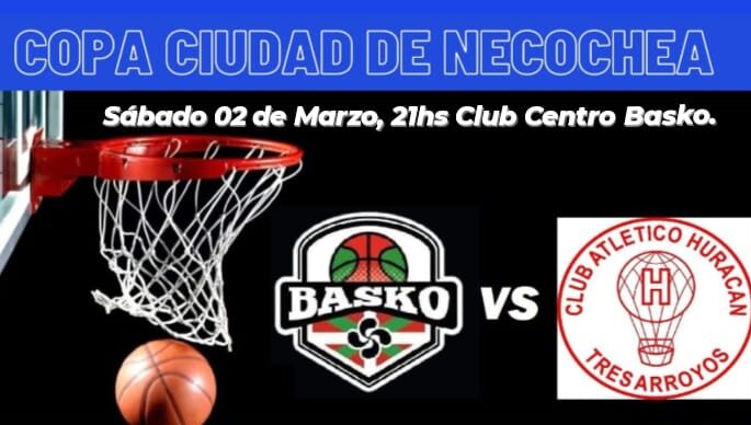 El sábado venidero se jugará en nuestra ciudad, más precisamente en el gimnasio de Centro Basko, un partido de básquetbol donde estará en juego la Copa “Ciudad de Necochea”. En la oportunidad se presentará el campeón de la Asociación Tresarroyense de Básquetbol, Huracán, que enfrentará al dueño de casa, subcampeón del torneo Clausura 2023.
