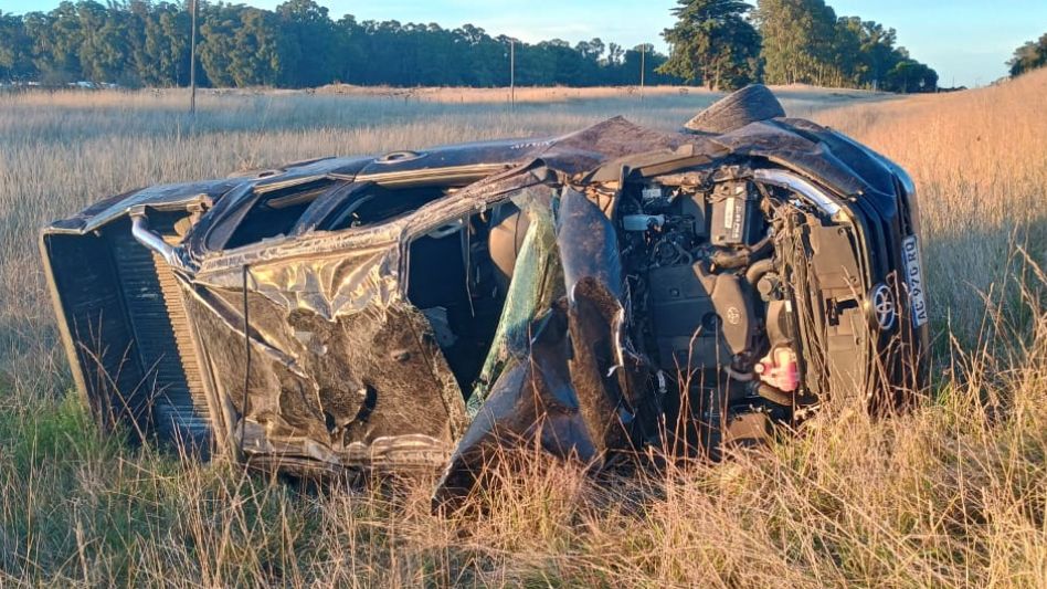Por motivos que se investigan, la camioneta en la que se trasladaba volcó en el Km.399 de la ruta 3, donde hay una curva muy pronunciada que ha dado lugar a varios accidentes, algunos de gravedad como este.