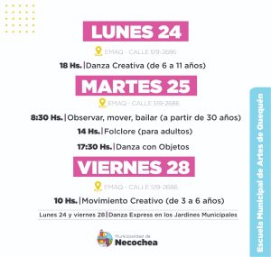 El Día internacional de la Danza se celebra el sábado 29 de abril y por tal motivo las escuelas municipales de Artes de Necochea y Quequén, EMAN y EMAQ, presentaron un cronograma de múltiples actividades libres y gratuitas para la comunidad, a realizarse en ambas sedes y en el Polideportivo Municipal, en 10 y 65.