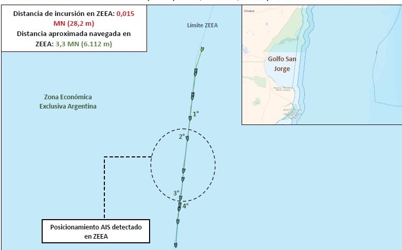Cabe señalar que, previamente, el jueves 29 de enero, la Autoridad Marítima nacional había notificado al capitán del buque que se encontraba realizando tareas de pesca muy próximos al límite de la ZEEA, indicándole la necesidad de mantener un margen de seguridad a fin de evitar incursiones ante eventuales imprevisto. Dicha notificación fue debidamente recepcionada por el responsable de la embarcación.