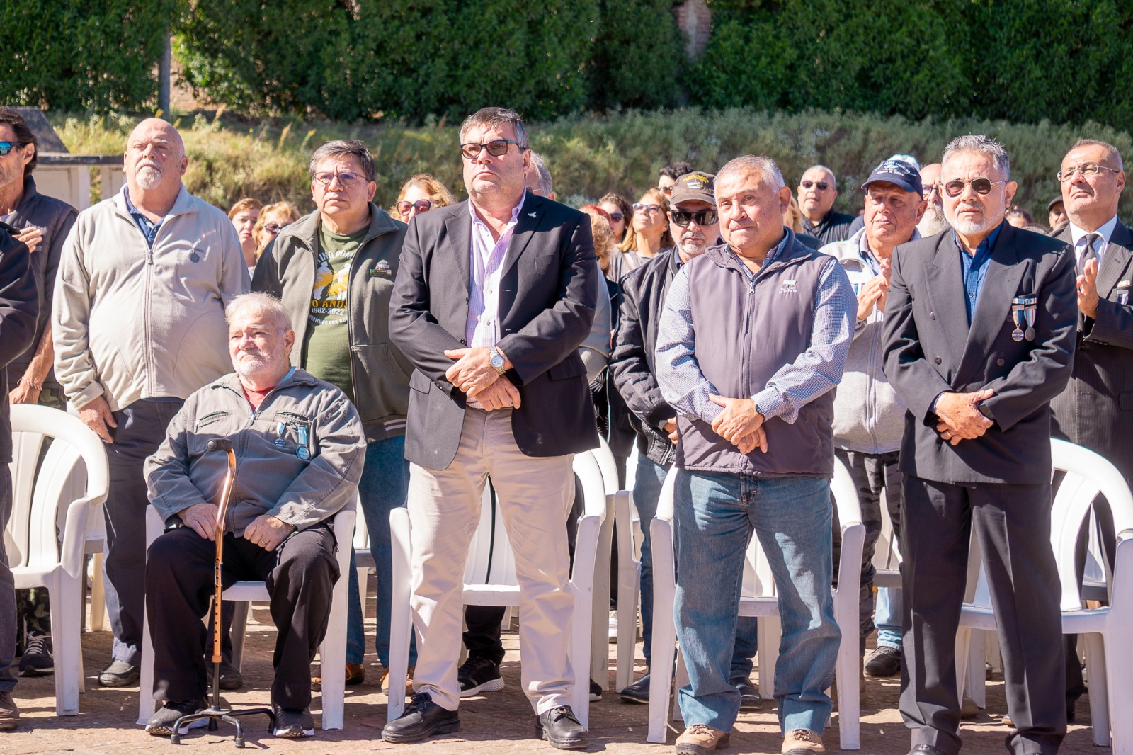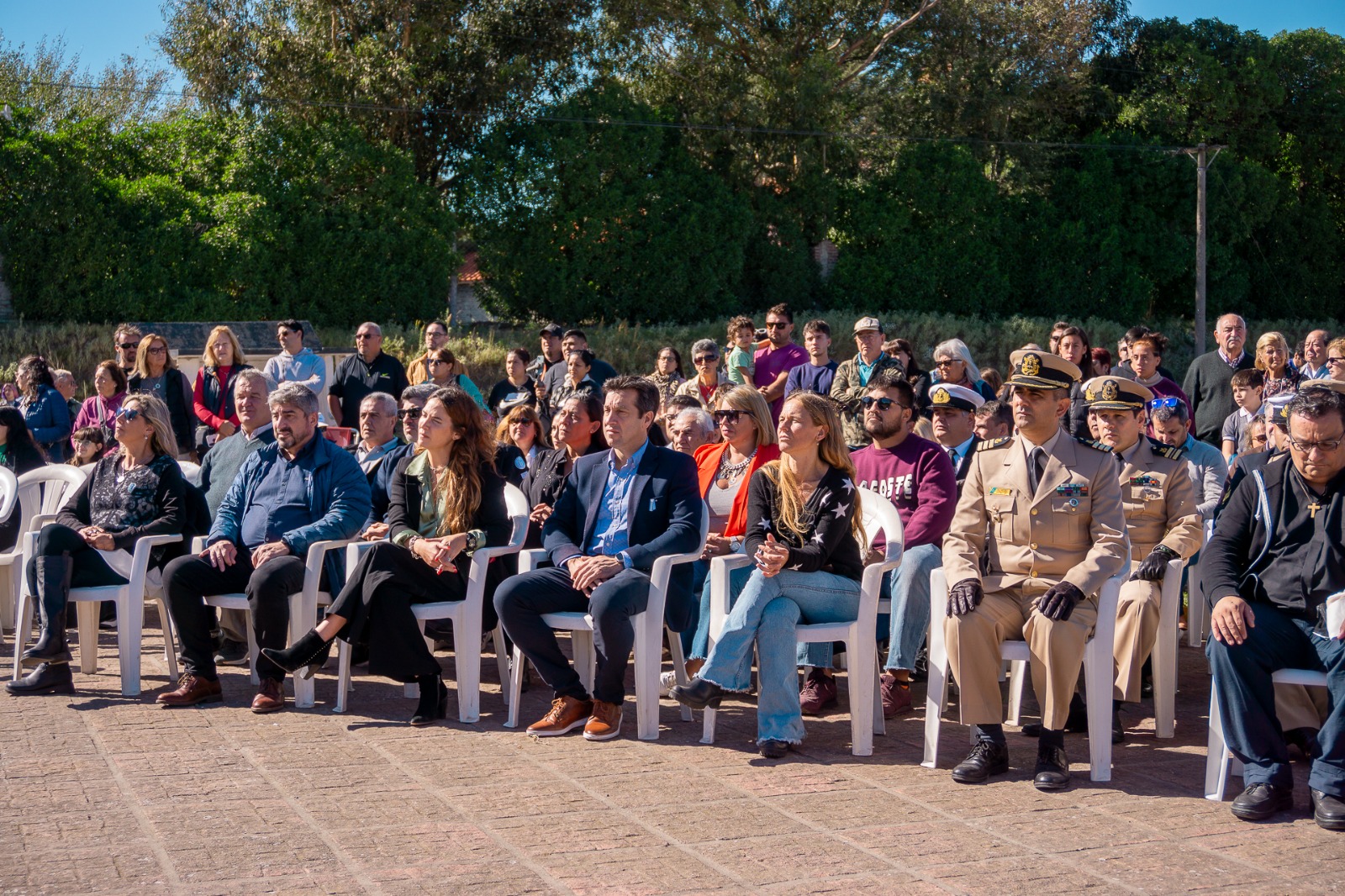 Seguidamente se entonaron las estrofas del Himno Nacional Argentino y se realizó un minuto de silencio como así la colocación de ofrendas florales de distintas instituciones, entre ellas el Municipio. En tanto, previo a las palabras alusivas se realizó la invocación religiosa por parte del cura de la parroquia Nuestra Señora de la Merced, Hernán Gómez Syez.