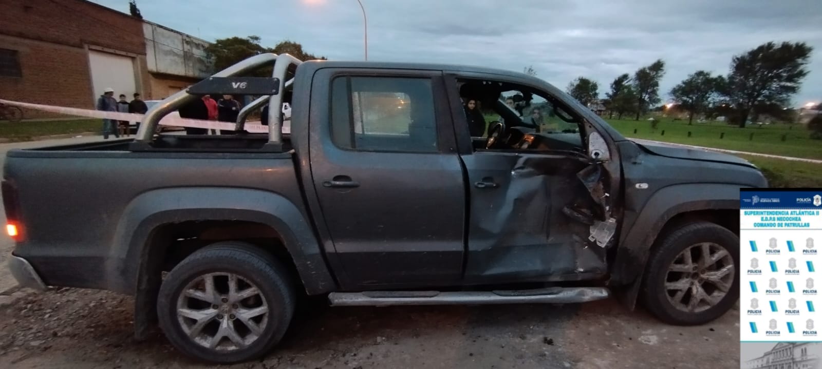 Según fuentes policiales, la camioneta era conducida por un hombre de 78 años, identificado con las iniciales G.R.A, quien circulaba por calle 30. Al llegar a la intersección con la Ruta 80, fue impactado del lado del acompañante del conductor por la motocicleta, que se desplazaba por la ruta mencionada.